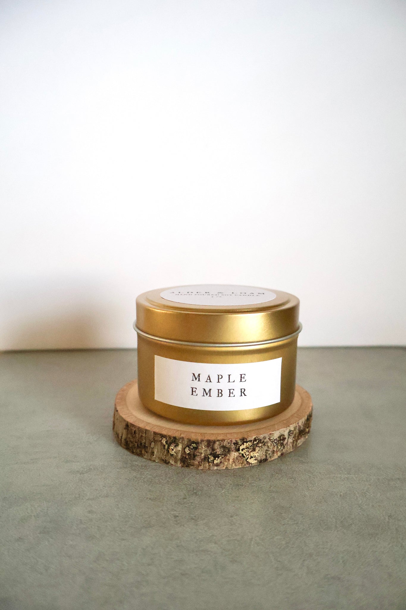 Maple Ember Soy Candle, Hand Poured, Natural, Eco Friendly, Earthy Scent, Fall Candle, 4 oz Tin